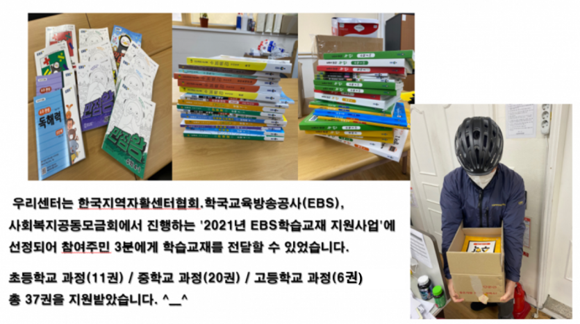 2021년 상반기 EBS 학습교재 지원 선정 페이지 정보 작성자 서울중구지역자활센터 댓글 0건 조회 6,017회 작성일 21-05-21 16:15 목록 본문 - 이전글서울중구지역자활센터 비전 컨설팅 진행 완료 21.05.21 다음글서울자활소식 "희망메아리" 3월호 21.03.30 댓글 0 댓글목록 등록된 댓글이 없습니다.